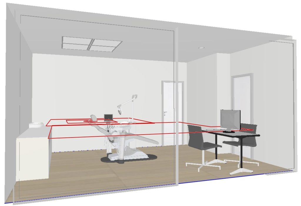 Il faut toujours 4 dalles LED pour éclairer normativement une salle de soin de dimension standard.